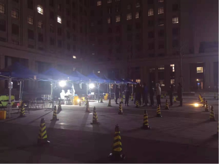 以岳伟同志和陈勃昊同志为代表的党员先锋队机动灵活组成员们,在学院寒夜需要志愿者维持二号巨构北门出入秩序的时候积极报名上前,承担起这份守卫同学们平安的责任。像他们这样的同志还有很多,有整天直至黑夜都在为同学们做核酸的校医院工作人员,有为更方便大家外带餐食辛勤备货回不了家的食堂叔叔阿姨,有我们身边的在志愿者的位置上默默付出的你们……