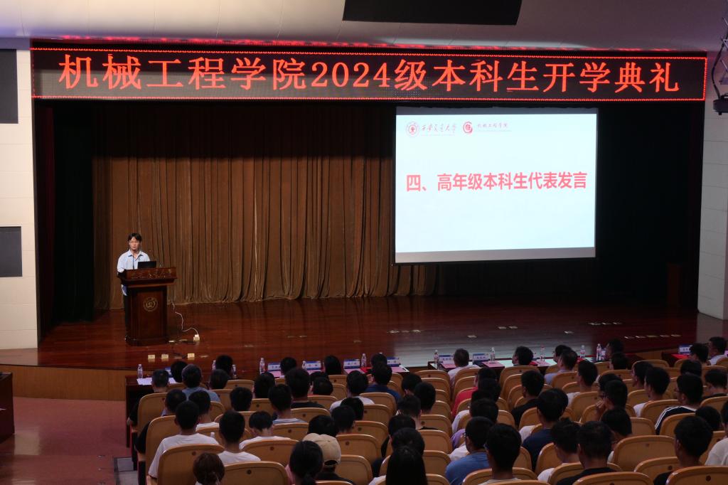 机械工程学院党委书记张俊斌对2024级新生的到来表示欢迎和祝贺。他勉励2024级新生要志存高远、坚持理想,立大志、做大事;要勤奋学习、苦练内功,锤炼过硬本领;要涵养高尚的品德、健全的人格。他希望同学们保持积极乐观的心态,在大学时光中健康快乐成长、学有所成,成为在国家建设发展中担当重任的栋梁之才。