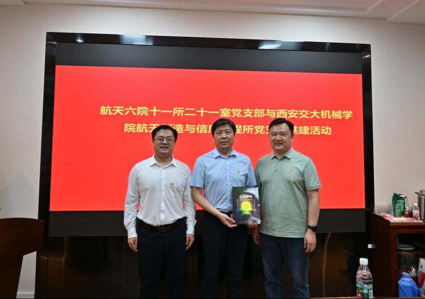 为发挥党建引领作用,推动支部共建协同发展、支部党建双向促进,5月23日下午,机械学院航天制造与信息工程研究所党支部与航天六院十一所二十一室党支部联合开展了主题为“党建引领聚能量,校企深融破难题”的支部共建活动,活动在西安交大兴庆校区机械学院第一会议室进行。机械工程学院党委书记张俊斌、副院长周光辉,航天六院十一所二十一室主任马元,航天制造与信息工程研究所支部书记翟智、所长刘金鑫及双方支部近30名党员同志参加了本次活动。本次活动由航天所支部书记翟智主持。
